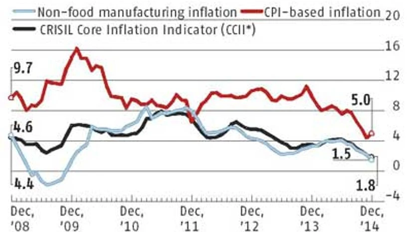 CRISIL Core Inflation Indicator (CCII), an alternative measure of core inflation calculated by removing metal prices from the prices of manufactured articles, fell to 1.8 per cent in December from 2.2 per cent in the previous month. The reason metals are excluded from the CCII is that metal prices are mostly determined by changing global demand-supply dynamics and volatility in exchange rates, rather than domestic conditions alone.