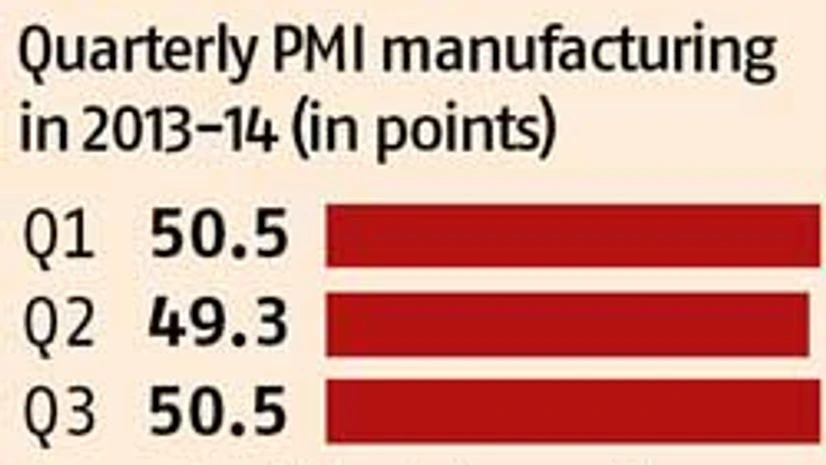 PMI average for the manufacturing sector stood at 50.5 points in the October-December quarter, slightly higher than 49.4 in the previous quarter ended September 2013.