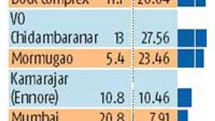 April to July, traffic in New Mangalore Port Trust fell 5.83 per cent and in Visakhapatnam Port Trust it fell 10.5 per cent. Kamarajar Port (formerly Ennore Port) registered a 10.5 per cent increase in traffic. Jawaharlal Nehru and Visakhapatnam port trusts registered less than the sector average growth.