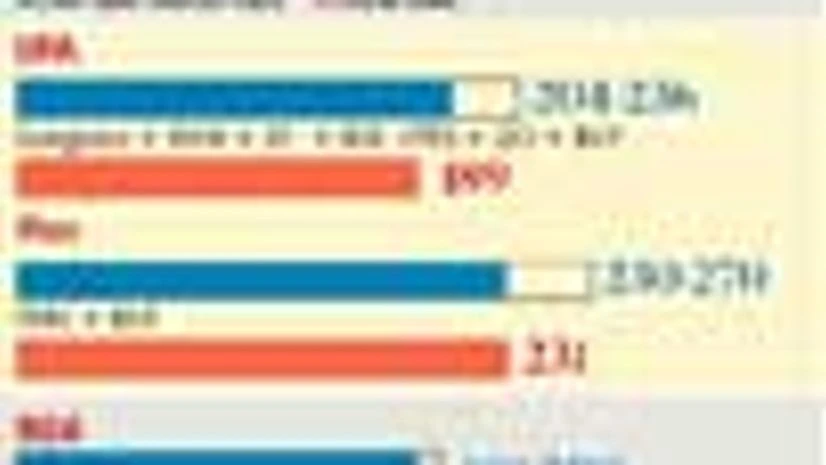 Political alliances are unlikely to yield a decisive verdict in the 2014 Lok Sabha elections and power would pass to the hands of smaller, regional parties, leading to the possibility of a badly hung Parliament, said two polls — the CNN-IBN-Hindu-CSDS survey and the Times Now-C-Voter survey — eight months before the general elections. Both predicted a minor increase in the number of seats for the BJP and a small increase in the votes of the Congress. The Times Now poll saw a decisive increase in the seats held by Jayalalithaa (9 to 29) and the Samajwadi Party (23 to 33).