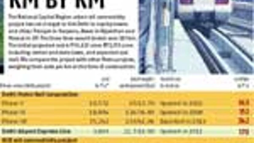 The National Capital Region urban rail connectivity project has set a target to link Delhi to nearby towns and cities: Panipat in Haryana, Alwar in Rajasthan and Meerut in UP. The three lines would stretch over 381 km. The initial projected cost is ~55,825 crore (~72,170 crore including central and state taxes, and expected cost rise). We compare the project with other Metro projects, weighing their costs per km at the time of construction: