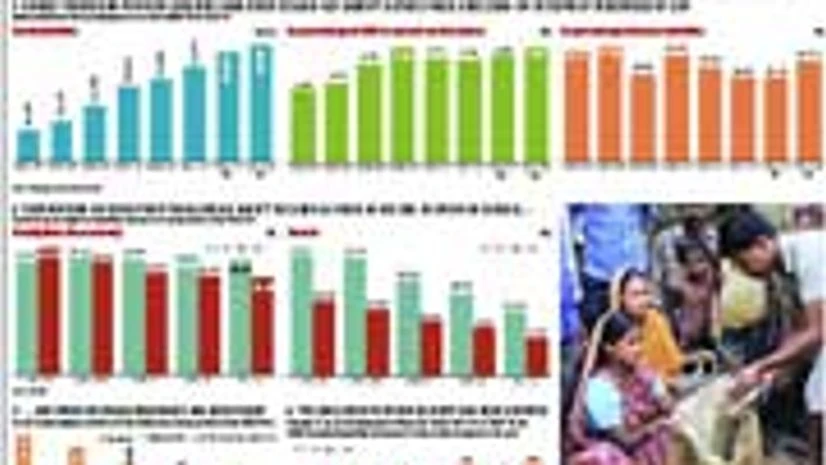 Finally, even the basic need for food security has been questioned. The number of respondents to the National Sample Survey reporting they already got two square meals every day of the year has steadily increased until, in 2009-10, 99.6 per cent of urban and 98.9 per cent of rural respondents said they were eating two square meals every day.