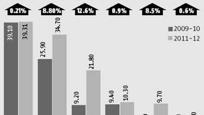 Oddly, it plunged in rural areas from 10.3 per cent in 2009-10 to 1.6 per cent in 2011-12 but surged in urban parts from 9.2 per cent to 22.3 per cent.