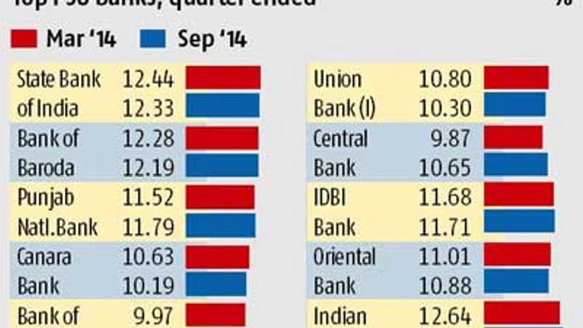 This has resulted in a decline in the capital adequacy ratio from 13 per cent to 12.8 per cent. RBI’s financial stability report has also noted out that capital infusion efforts by PSBs, other than the capital infusion by the government, will be challenging because of their relatively low equity valuations, compared to private-sector peers. The National Democratic Alliance government, which is cutting expenditure to meet its fiscal-deficit target, has favoured raising funds from the market by the PSBs. Even though the stock markets were upbeat in 2014, which enabled many private banks to raise capital via qualified institutional placement, PSBs were unable to do so due to poor valuations.