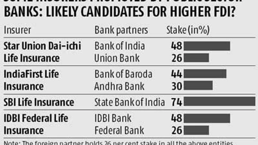 As for SBI Life Insurance, State Bank of India owns 74 per cent of the total capital and BNP Paribas Cardif the remaining 26 per cent. Arijit Basu, MD, SBI Life, said their foreign partner was keen to increase its stake, though the talks were at a preliminary stage.