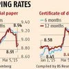 CD issuance include IDBI Bank, which raised two to three-month deposits at 8.49 per cent, Canara Bank’s one-year CD at 8.46 per cent and Andhra Bank’s one-year CD at 8.47 per cent.