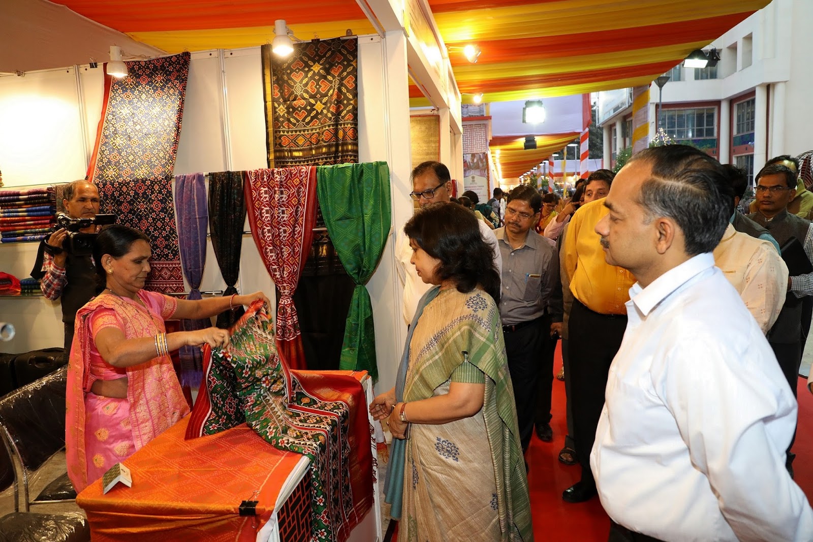 For the Handicraft section, there are women artisans from Bihar, Madhya Pradesh, Assam, Odisha, West Bengal, Uttar Pradesh, Andhra Pradesh, Tamil Nadu, Gujarat, New Delhi, Rajasthan and Manipur. The range of products includes Pattachitra, Tie & Dye, Bead Jewellery, Crochet Lace, Kantha Embroidery, Embroidery, Thanjavur Glass Painting, Bell Metal, Shawl as Artware, Natural Fiber, Chikan Embroidery, Stone Craving, Doll Making, Cane & Bamboo Jewellery, Tribal Textiles, Wood carving, hand embroidery, leather craft, Madhubani Painting and Scratch Painting.