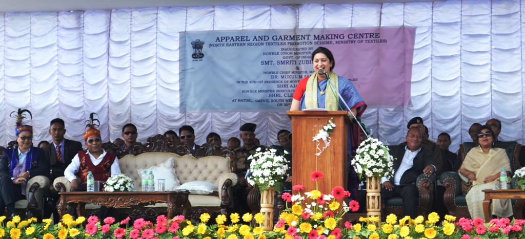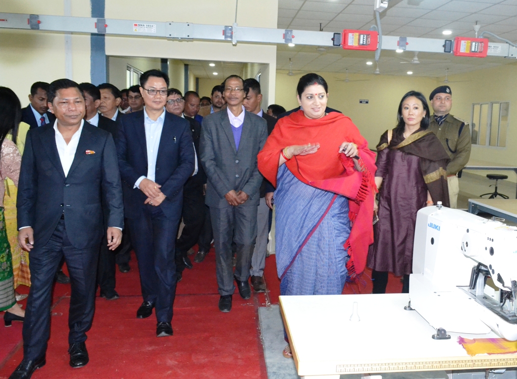 The Union Textiles Minister Smt. Smriti Zubin Irani, along with Chief Minister of Meghalaya Dr. Mukul Sangma, inaugurated the first ever Apparel and Garment Making Centre in Meghalaya, near Ampati in South West Garo Hills today, in the presence of Union Minister of State for Home Affairs, Shri Kiren Rijiju.