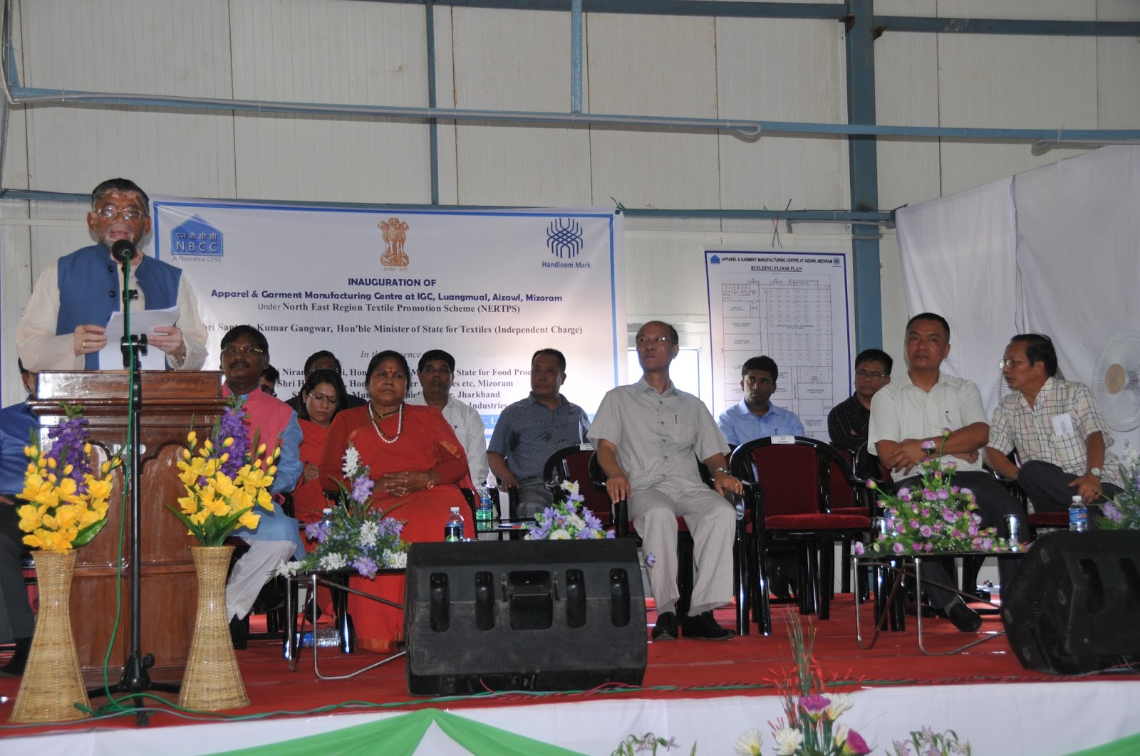 The Apparel and Garment Making Centre in Mizoram is one of the eight Apparel & Garmenting Centers being set up by the Ministry under NER Textile Promotion Scheme. The Center is located at Industrial Growth Centre at Luangmual in Aizawl. The foundation stone for the Apparel Centre in Mizoram was laid by the Union Textiles Minister on 3rd July, 2015.