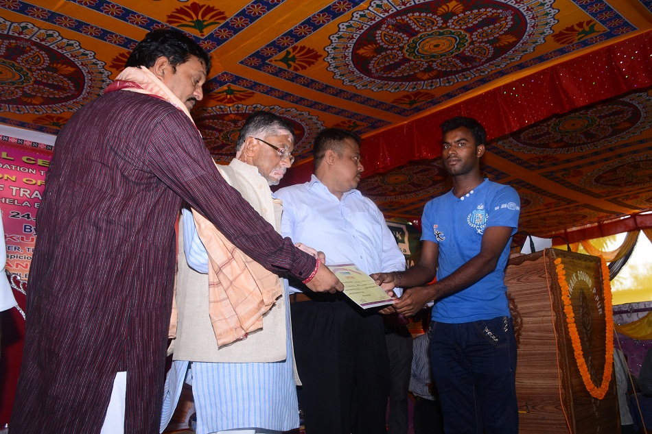 The Union Textiles Minister Shri Santosh Kumar Gangwar inaugurated today, a 45-day long skill upgradation training programme for Scheduled Caste handloom weavers belonging to Sohlela Block in Bargarh district of Odisha. In the function held in the village Birjam, the Minister also gave away the certificates to pass outs of the first Handloom Entrepreneur training course. The Minister also handed over the sanction letters to handloom weavers under Pradhan Mantri Weaver MUDRA Scheme. He also visited an exhibition of exquisite Ikat handloom products prepared by awardees and producers registered under India Handloom Brand.