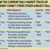 The bull market turned 883 days old on Tuesday, topping China's previous record by 56 days, after a 119 per cent surge in the Shanghai Composite Index since December 2012. Even if the advance is measured from June 2013 - when the gauge narrowly avoided a bear-market drop of 20 per cent - it's still the second longest since Chinese bourses opened for trading in 1990.