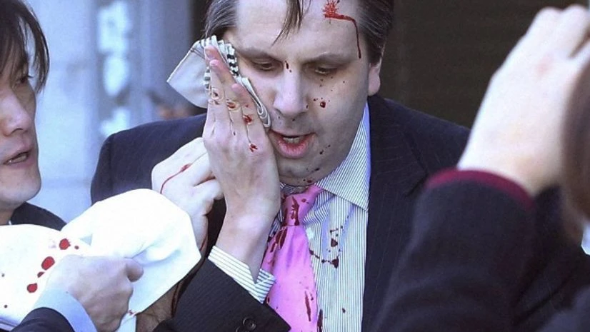 The assailant was caught, and identified by police as 55-year-old Kim Ki-jong. In 2010, Kim tried to attack the Japanese ambassador to South Korea by throwing a piece of concrete and was given a suspended jail term, according to the police.