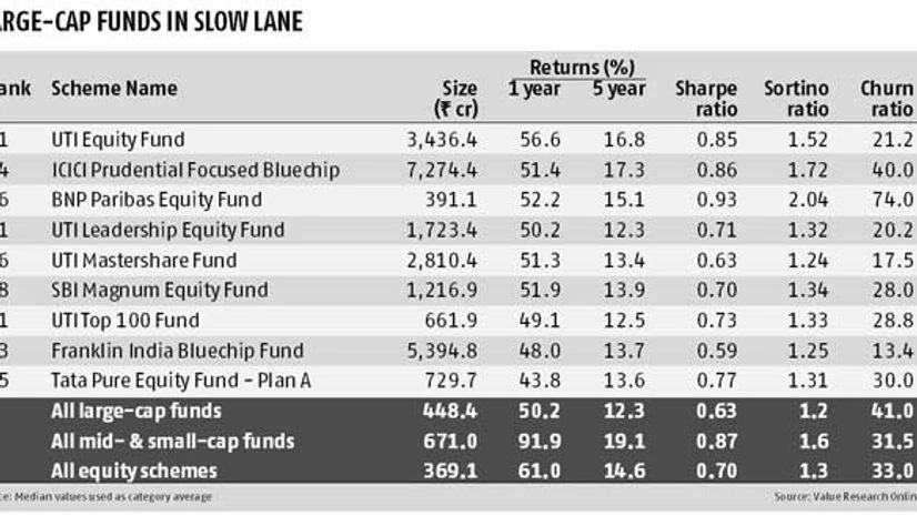 The one-way movement in mid- and small-cap stocks is now prompting many fund managers to raise allocation to large-cap stocks (stocks that are either part of Nifty or Sensex). "Many mid-caps are now more expensive than their large-cap peers. It has tilted the reward ratio in favour of the latter at least in the short to medium term," says Anoop Bhaskar, Head, Equities at UTI Mutual Fund. Two of his funds are among the top 15 including UTI Transportation, among top performer in the last one year.