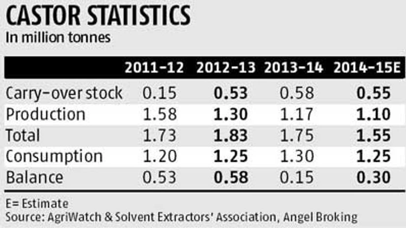 India produces 700,000-800,000 tonnes of castor derivatives in the form of oil, mostly for export. Domestic use is negligible. Traders estimate total arrival at 2,600 tonnes in the spot markets, around 25 per cent lower than the same time last year.