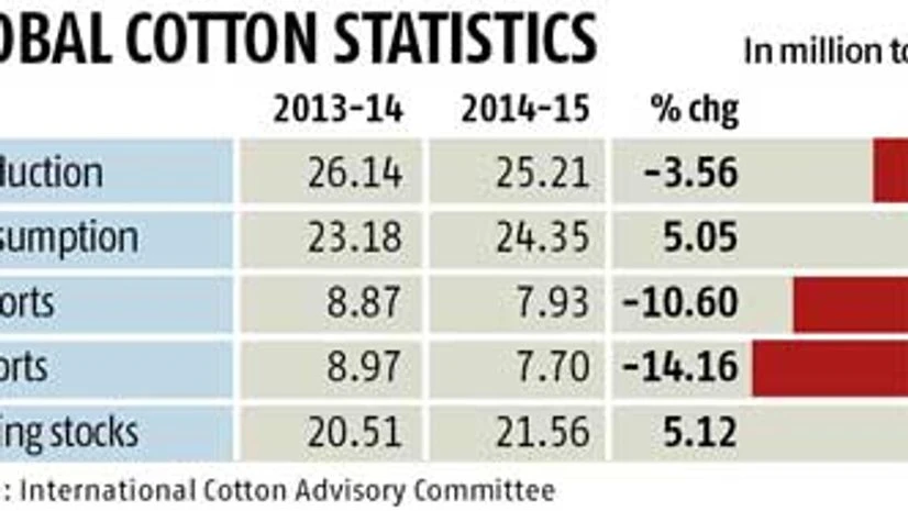 In the past three months, international prices of cotton have fallen 25 per cent to 68 cents a pound. During the same period, the price declined six per cent to Rs 11,100 a quintal (for the Shankar-6 variety) in India. As a result, Chinese importers can secure cotton of a better quality and at a lower price from other countries. Demand for Indian cotton has also fallen because Chinese authorities have asked mills in that country to import only 20 per cent of their requirements, over and above the annual import quota of 850 tonnes.