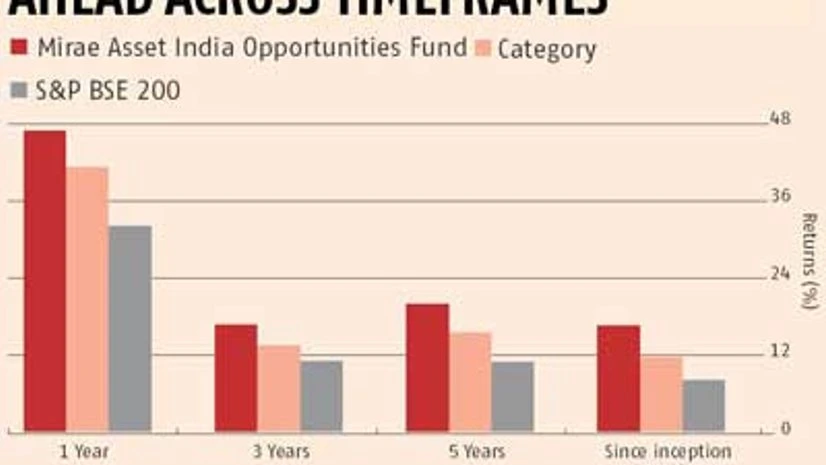 Launched in April 2008, Mirae Asset India Opportunities Fund has been ranked CRISIL Fund Rank 2 in the diversified equity category under the CRISIL Mutual Fund Ranking for the quarter ended March 2014. Average assets under management (AUM) of the fund for the quarter ended March 2014 were Rs 361 crore. Gopal Agarwal and Neelesh Surana have been jointly managing the fund since May 2008. Since its inclusion in the CRISIL Mutual Fund Ranking, the fund has been in the top 30 percentile (ranked 1 or 2) of the diversified equity category.