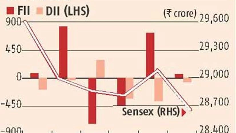Despite two very positive news for the markets - a rate cut by the Reserve Bank of India and passage of the much-awaited insurance Bill - the Sensex lost 945 points or 3.2 per cent during the week. Market players say the sell orders came mostly from high networth individuals (HNI) who had borrowed long-term money at the start of the financial year to play the rising market. "Lenders give these loans at 12 to 15 per cent to HNIs for the entire financial year. The borrowing was quite high this year because of election expectations. With the year coming to an end, HNIs are unwinding positions to repay borrowers. Anyway, they are sitting on good profits," said a broker. According to BSE data, foreign institutional investors were net buyers of Rs 525 crore for the week while domestic institutional investors were net sellers of Rs 730 crore.