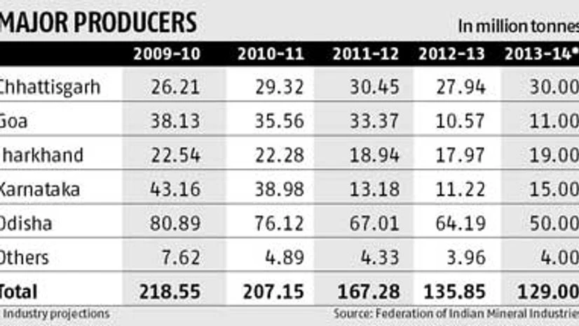 "The output will be flat year-on-year in 2013-14 as Goa was out of business. Jharkhand and Chhattisgarh have more or less remained flat in the current year till now. In Karnataka, too, the production is yet to pick up as many leases are still waiting for clearances," said Ritesh Shah, senior analyst with Espirito Santo.