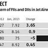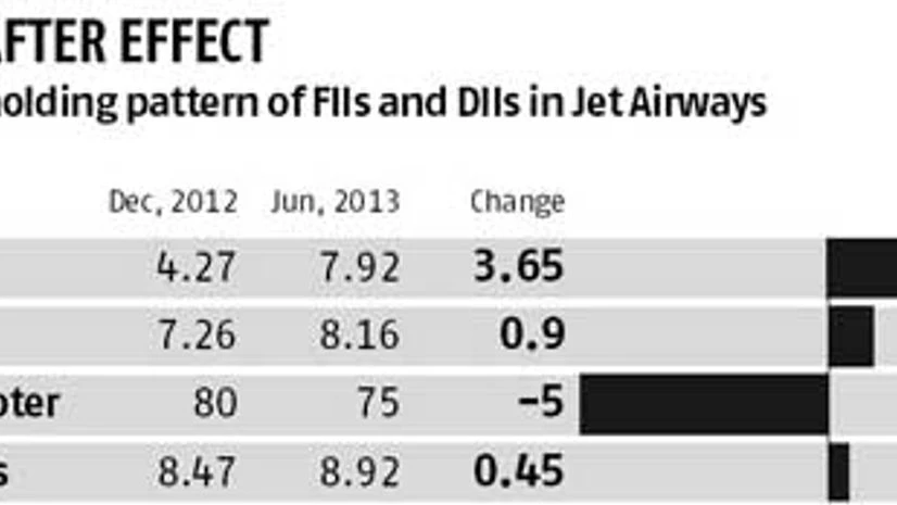 Foreign institutional investors scaled up their holdings in Jet from 4.27 per cent in December 2012 to 7.92 per cent as on June 30, while domestic institutional investors increased their exposure by around a percentage point to 8.16 per cent.