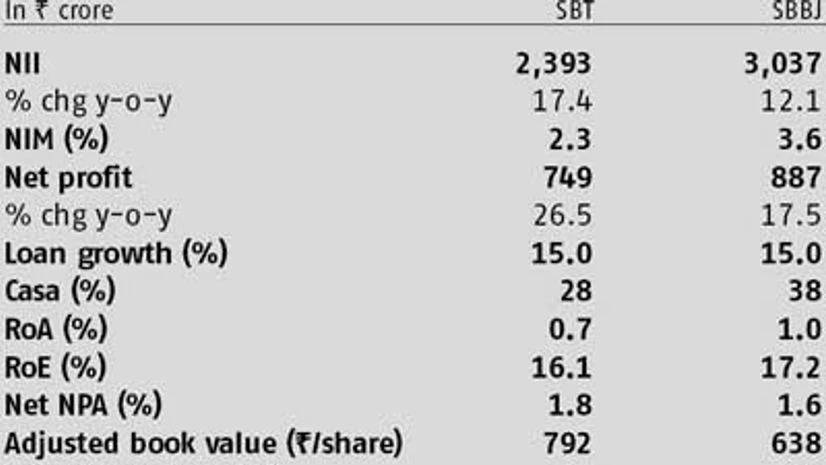 “Assuming implied valuation of 0.7 times book value for the last merger (State Bank of Indore), both SBT and SBBJ have significant upside potential (40 per cent from current levels) if the merger were to happen in FY15. Though timing the merger is difficult, we believe the merger ratio of SBT and SBBJ would be higher since these banks have 25 per cent stake held by minority investors versus two per cent for State Bank of Indore,” believe analysts at Axis Capital.