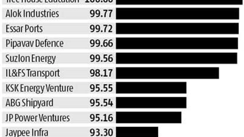 IVRCL pledged 100 per cent of promoter holdings, while others like Alok Industries have pledged 99.77 per cent of promoter holdings, and 99.72 per cent of promoter holding in Essar Ports has been pledged.