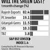 Abneesh Roy, director, institutional equities research, Edelweiss Securities, says, "Whenever gold corrects sharply, we witness huge footfalls. This time, gold prices have not crashed but reduced gradually. Plus, the festive season is still one month away. People will be more circumspect this time. Given that the uptick will be spread out over time, the impact on the financials of jewellery companies is unlikely to be meaningful. Thus, there are few catalysts for a further rally in jewellery stocks."