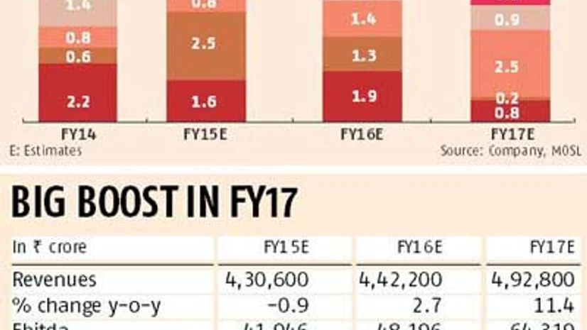For instance, the investment of around Rs 70,000 crore in its telecom foray is likely to be a game changer for RIL, feels Baliga. Currently, RIL’s telecom investments are considered at a discount while valuing the stock. Reliance plans to launch the services in 2015, covering at least 90 per cent of urban India and a third of rural India. Once the business starts yielding returns, it will add to the overall numbers. How fast RIL is able to scale up the business will have a bearing on the valuations of the telecom investments.