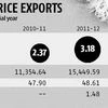 Data compiled by the Agricultural and Processed Food Products Export Development Authority showed exporters’ average realisation shot up 16 per cent to Rs 56.10 a kg in 2012-13, compared with Rs 48.61 a kg in the previous year. In 2010-11, exporters’ average realisation was recorded at Rs 47.90 a kg. A similar increase was witnessed in realisation from domestic markets also. The average cost price for growing basmati rice works out to Rs 16-17 a kg.