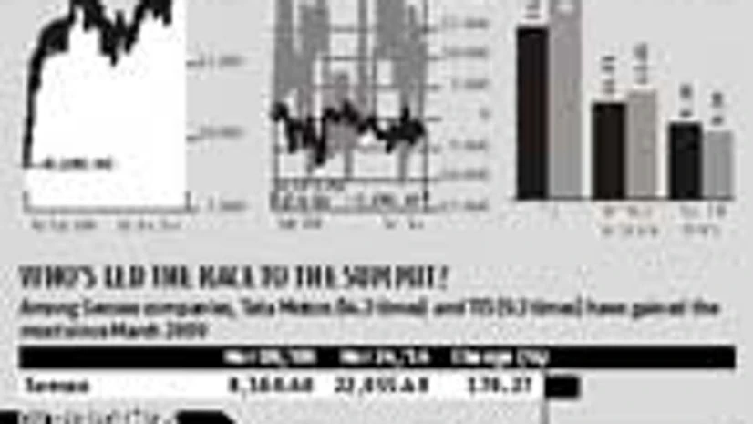 Among Sensex companies, Tata Motors (14.3 times) and TCS (9.3 times) have gained the most since March 2009