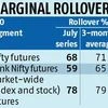 However, rollovers in the Bank Nifty remained lower at 58 per cent as against a three-month average of 65 per cent. Analysts said the lower rollovers were on account of the weak June quarter earnings numbers announced by some of the PSU banks. Besides, the Bank Nifty underperformed the benchmark Nifty during this series. The Bank Nifty was up 1.4 per cent while the NSE Nifty rose about three per cent between the June and July series expiry sessions.
