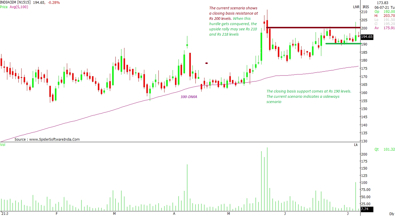 The stock faces resistance at Rs 200 and has support at Rs 190 levels on a closing basis. If it manages to conquer the resistance, an upside rally towards Rs 210 and Rs 218 levels cannot be ruled out, as per the daily charts. For now, the current scenario indicates sideways movement for the stock. That said, the medium-term outlook has the support of 100-DMA, currently placed at Rs 176 levels. CLICK HERE FOR THE CHART