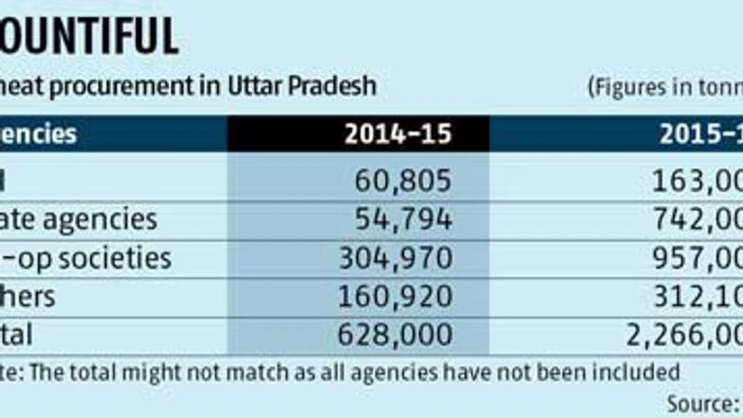 A strong intervention by central and state governments and near-absence of private buyers due to quality issues has seen wheat procurement in Uttar Pradesh - one of India's biggest producing states, but laggard when it comes to purchases - jump over 260 per cent in 2015-16 as compared to that of 2014-15.