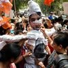 Activists of BJP Mahila Morcha buring the effigy of Aam Aadmi Party (AAP) leader Kumar Vishwas during a protest at Delhi Chief Minister Arvind Kejriwal's residence in New Delhi