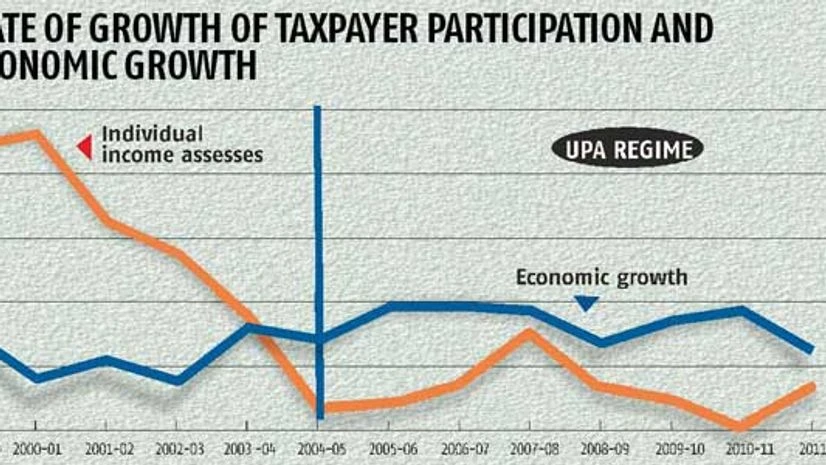 The striking fact is that before the UPA came to power in 2004, tax assesses were growing on average at 16 per cent - but between 2004-05 and 2011-12, they were growing at just under 2.5 per cent. This major slippage that occurred is actually worse when one accounts for the fact that economic growth under the UPA was much faster than it was in the preceding years. We compute that in terms of this metric of tax performance, the UPA government was 10 times (or nearly 1,000 per cent!) worse than the previous government in increasing taxpayer participation. To be fair, this government has been pushing hard to implement the GST but, as we argued earlier, that will not have the same impact on improving the quality of democracy. With such a small percentage of the population participating as taxpayers, and with progress apparently decelerating, is it any wonder that public economics has become all about spending?
