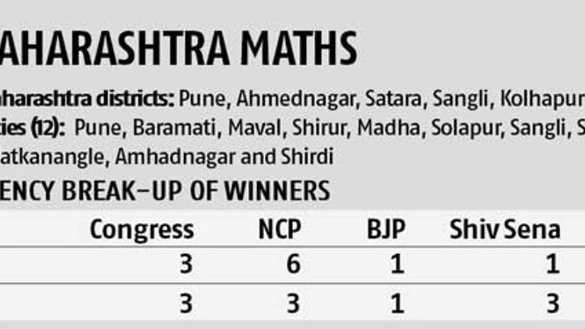 Districts such as Ahmednagar, Sangli, Satara and Kolhapur have always supported the Congress-NCP combine. But the BJP winning a seat in Ahmednagar or Solapur and the Shiv Sena grabbing seats in Kolhapur and Pune are definite signs of the Congress-NCP's waning clout over the traditional Maratha vote base.