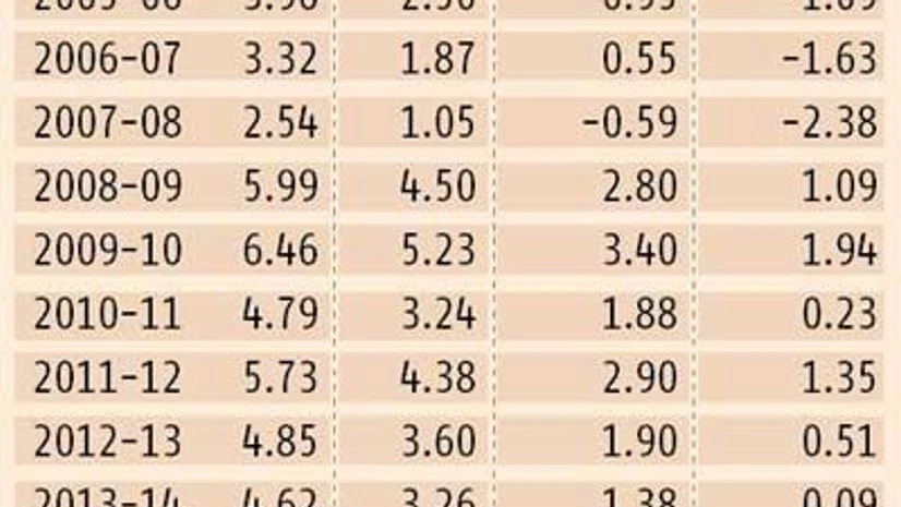The Budget number which is discussed ad nauseam is the gross fiscal deficit (GFD) which was projected at 4.1 per cent of GDP last year. In simplistic terms, if the GFD number were to be driven more by well-conceived capital expenditure on infrastructure and the environment rather than on salaries, travel etc. clearly there would be positive implications over the long-term. This single number can be misleading and Table I shows the break-up over the last 10 years. In 2014-15 we expect a primary revenue deficit of 0.38 per cent of GDP. That is, we have little flexibility to invest for the future once internal debt servicing is included. The government should provide its best estimates for these numbers not just for the current year but on a rolling basis for the next three years.