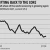 So that's one big difference from the 1990s. Another is that the slowing East Asian juggernaut - China this time instead of Japan - accounts for a much bigger share of the global economy but is also a lot poorer on a per capita basis, which could have all sorts of economic and political ramifications. Yet another is that while the US is still the core of the global economy, it is a smaller core than it was in the 1990s and thus less reliable as a global growth locomotive.