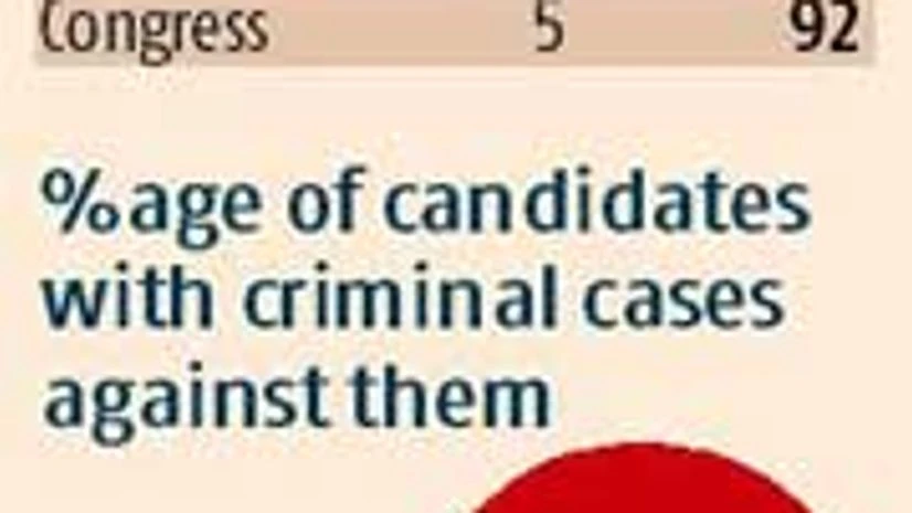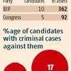 While the Congress has two of its 18 (11 per cent) candidates with criminal cases against them, the BJP has three out of 18 (17 per cent), the Bahujan Samaj Party has two out of 18 (11 per cent) candidates and Samajwadi Party has one out of five (20 per cent) candidates who have declared criminal cases in their affidavits.