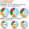 Chanakya showed BJP winning 52 seats in the 90-member Haryana Assembly, and 151 of the 288 seats in Maharashtra along with its smaller allies. The majority mark in these states is 46 and 145, respectively.