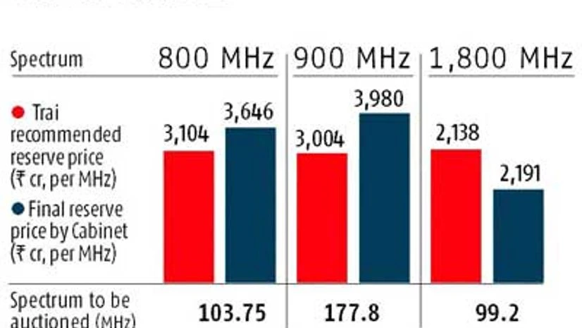 The Cabinet has increased the base price for the 900-MHz band by 32.5 per cent compared to what Trai had suggested; for 800-MHz band, it increased the reserve price by 17 per cent and 2.4 per cent for 1,800-MHz.