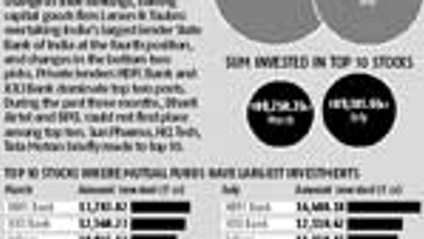 The top 10 stock picks of India's equity fund managers have been consistent so far this financial year. About one-fourth of the equity assets under management has continued to find place in the top 10 stocks - all blue chips. There has not been much change in their rankings, barring capital goods firm Larsen & Toubro overtaking India's largest lender State Bank of India at the fourth position, and changes in the bottom two picks. Private lenders HDFC Bank and ICICI Bank dominate top two posts. During the past three months, Bharti Airtel and BPCL could not find place among top ten. Sun Pharma, HCL Tech, Tata Motors briefly made to top 10.