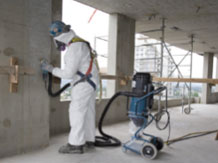 Worker grinding concrete using a HEPA vacuum exhaust attachment on the grinder; Courtesy: 3M