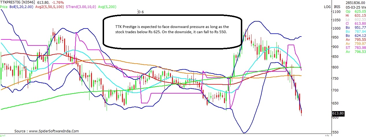 The recent market downturn has taken a toll on stocks across-the-board. An analysis of India's most-valued companies in terms of market capitalisation by Business Standard shows that as many as 118 listed companies have dropped below the $1 billion market club in the last five months. At the peak of the market rally, a total of 618 companies were part of the elusive $1 billion market club. That number has since fallen to 500 following a $1 trillion wipe-out in India's market capitalisation. Similarly, companies with over $10 billion valuation have declined from 127 to 91 in the same period. Among these, Raymond, TTK Prestige, Edelweiss Financial Services, Kirloskar Oil Engines, and Engineers India were few of the prominent names to fall out of the $1 billion market-cap club. READ MORE Raymond Current Price: Rs 1,320 Downside Risk: 18.9% Support: Rs 1,270; Rs 1,135 Resistance: Rs 1,390; Rs 1,450 Raymond stock is seen seeking support around its monthly super trend line, which stands at Rs 1,270 - a key technical indicator the stock has held since November 2021. As long as this support is respected, the stock may make attempts for a recovery. Any pullback in the stock is likely to be capped around to Rs 1,450 levels, with near resistance seen at Rs 1,390. CLICK HERE FOR THE CHART On the flip side, in case, the key support is violated it shall open the doors for an extended fall towards Rs 1,070 levels. Interim support for the stock can be anticipated at Rs 1,135. ALSO READ: Outlook on stocks that may be impacted by US reciprocal tariffs TTK Prestige Current Price: Rs 615 Downside Risk: 10.6% Support: Rs 570 Resistance: Rs 675 TTK Prestige stock is expected to face downwards pressure in the near-term as long as the stock trades below Rs 625. On the downside, the stock can slide to Rs 550, with interim support seen at Rs 570 levels. In case of a pullback, the stock is expected to counter stiff resistance around Rs 675 levels. CLICK HERE FOR THE CHART Edelweiss Financial Services Current Price: Rs 90.65 Upside Potential: 32.3% Support: Rs 86.15 Resistance: Rs 97; Rs 111 Edelweiss Financial Services is seen trading in a fairly oversold zone, and testing support at its 20-MMA (Monthly Moving Average) at Rs 86.15. The stock has been trading above its 20-MMA since April 2023. As long as this support is respected, the stock can potentially attempt a pullback to Rs 120 levels. Interim resistance for the stock can be anticipated at Rs 97 and Rs 111 levels. CLICK HERE FOR THE CHART Kirloskar Oil Engines Current Price: Rs 602 Upside Potential: 13% Support: Rs 570 Resistance: Rs 640; Rs 650 Kirloskar Oil Engines has witnessed a massive 61 per cent plunge from its September 2024 high of Rs 1,399. The stock is trading in a fairly oversold zone, with some signs of a likely pullback in the near-term. The near-term bias seems cautiously optimistic as long as the support at Rs 570 is held. On the upside, the stock can attempt a pullback to Rs 680 levels; with interim resistance likely around Rs 640 and Rs 650 levels. CLICK HERE FOR THE CHART Engineers India (EIL) Current Price: Rs 151.20 Downside Risk: 16% Support: Rs 147; Rs 132 Resistance: Rs 162; Rs 170 Engineers India stock is expected to trade with a negative bias as long as the stock trades below Rs 170 hurdle, near resistance for the stock exists at Rs 162. On the downside, the stock can potentially tank to Rs 127 levels, with interim support likely around Rs 147 and Rs 132 levels. CLICK HERE FOR THE CHART