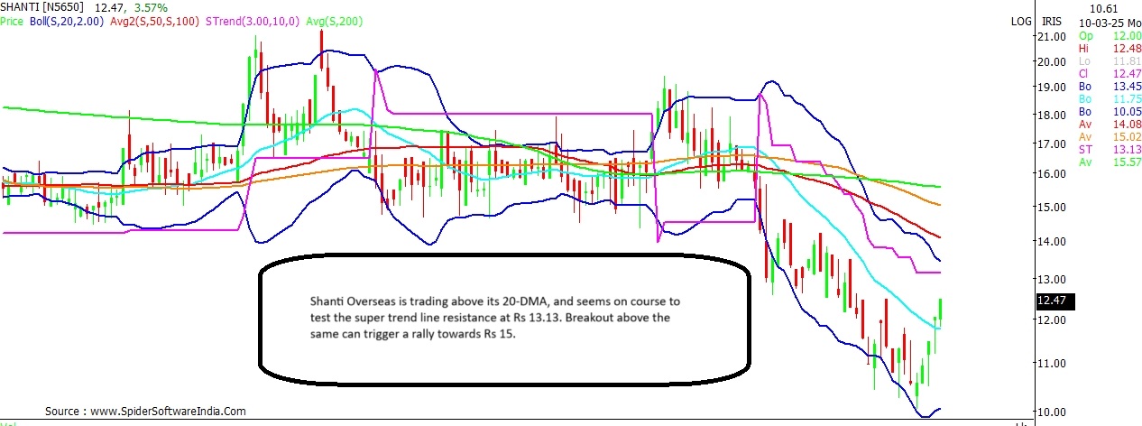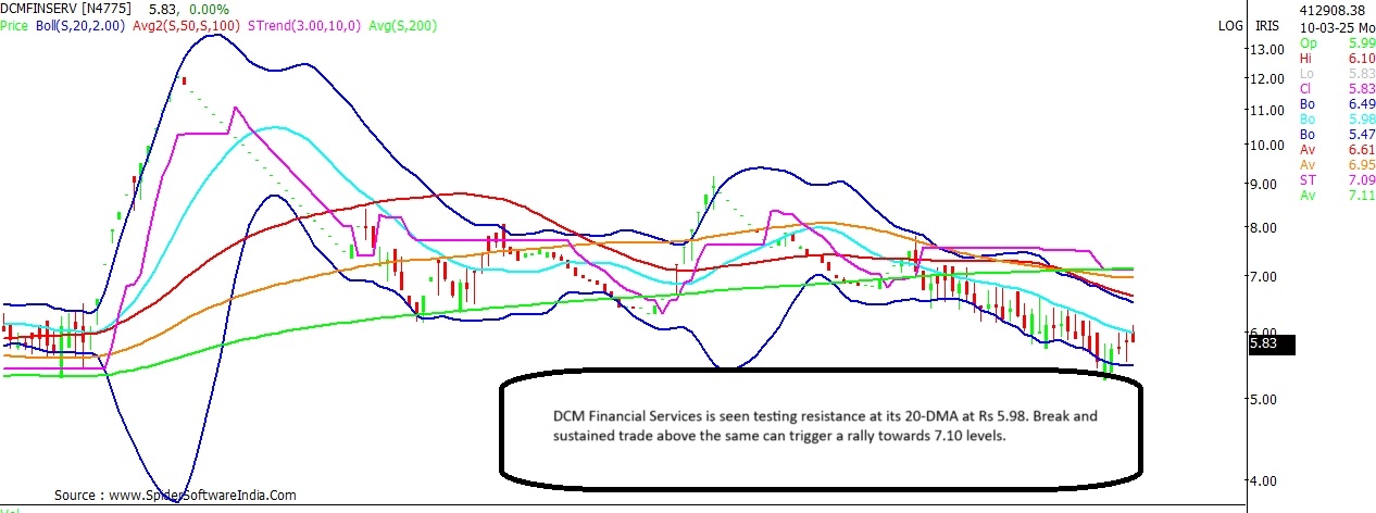 Here are 5 stock ideas based on technical analysis while the equity market counters a phase of high volatility. The NSE Nifty 50 has shed over 4 per cent so far this year, while the broader Nifty 500 index has dropped 8.4 per cent. The markets have been vulnerable to selling pressure amid Trump tariff-related uncertainties', tepid corporate earnings in Q3 and sustained selling by foreign investors. These 5 stocks - Ortin Global, DCM Financial Services, Shanti Overseas India, Lypsa Gems & Jewellery and Usha Martin Education & Solutions - traded on the National Stock Exchange (NSE) with a market capitalisation (mcap) of less than Rs 20 crore, and can potentially rally up to 24 per cent, indicate technical charts. Ortin Global Current Price: Rs 12.17 Upside Potential: 20.2% Support: Rs 11.83; Rs 11.22 Resistance: Rs 12.60; Rs 13.90 Ortin Global stock has surged nearly 21 per cent from its February low of Rs 10.44. The stock is now seen testing resistance at its 20-DMA (Daily Moving Average) at Rs 12.60. Break and sustained trade above the same can trigger a rally towards Rs 14.63. Interim resistance is seen at Rs 13.90. On the downside, the stock is expected to find support around Rs 11.83 and Rs 11.22 levels. CLICK HERE FOR THE CHART DCM Financial Services Current Price: Rs 5.83 Upside Potential: 21.8% Support: Rs 5.72; Rs 5.47 Resistance: Rs 5.98; Rs 6.50; Rs 6.90 DCM Financial Services has rallied nearly 11 per cent from its recent low, and is seen testing resistance at its 20-DMA at Rs 5.98. The bias at the counter is expected to remain favourable as long as the stock holds above Rs 5.72 and Rs 5.47 support levels. On the upside, break and sustained trade above the 20-DMA can trigger a rally towards Rs 7.10; with interim resistance likely around Rs 6.50 and Rs 6.90 levels. CLICK HERE FOR THE CHART ALSO READ: Power stocks: Buy in Summer, Sell in Winter; chart hints up to 27% upside Shanti Overseas India Current Price: Rs 12.47 Upside Potential: 20.3% Support: Rs 11.74; Rs 11.47 Resistance: Rs 13.13; Rs 13.43; Rs 14.05 Shanti Overseas is trading with a positive bias for the fifth straight trading session. The stock seems on course to test the super trend line resistance at Rs 13.13; above which a rally towards Rs 15 seems possible. Intermediate resistance for the stock can be anticipated around Rs 13.43 and Rs 14.05 levels. In case of a dip, the 20-DMA at Rs 11.74 can act as near-term support; below which support for the stock exists at Rs 11.47 and Rs 10.93 levels. CLICK HERE FOR THE CHART Lypsa Gems Current Price: Rs 7.70 Upside Potential: 24% Support: Rs 7.12; Rs 6.80; Rs 6.30 Resistance: Rs 8.26 Lypsa Gems has hit the 20 per cent upper limit in trades today; and in the process has given a fresh breakout on the daily scale. The overall bias for the stock is expected to remain bullish as long as the stock holds above Rs 6.30; with near support at Rs 7.12 and Rs 6.80 levels. On the upside, the stock can soar to Rs 9.55, with interim resistance likely at Rs 8.26. CLICK HERE FOR THE CHART Usha Martin Education Current Price: Rs 5.56 Upside Potential: 22.3% Support: Rs 5.17; Rs 5.14 Resistance: Rs 6; Rs 6.28; Rs 6.44 Usha Martin Education is trading in a fairly oversold zone, and close to its 200-WMA (Weekly Moving Average) - a key moving average the stock has held for the last five years. The 200-WMA stands at Rs 5.17, and coincides with the 20-MMA (Monthly Moving Average) at 5.14. Thus as long as these support levels are held, a pullback can be expected. On the upside, the stock can potentially bounce back to Rs 6.80; with interim resistance likely around Rs 6, Rs 6.28 and Rs 6.44 levels. CLICK HERE FOR THE CHART
